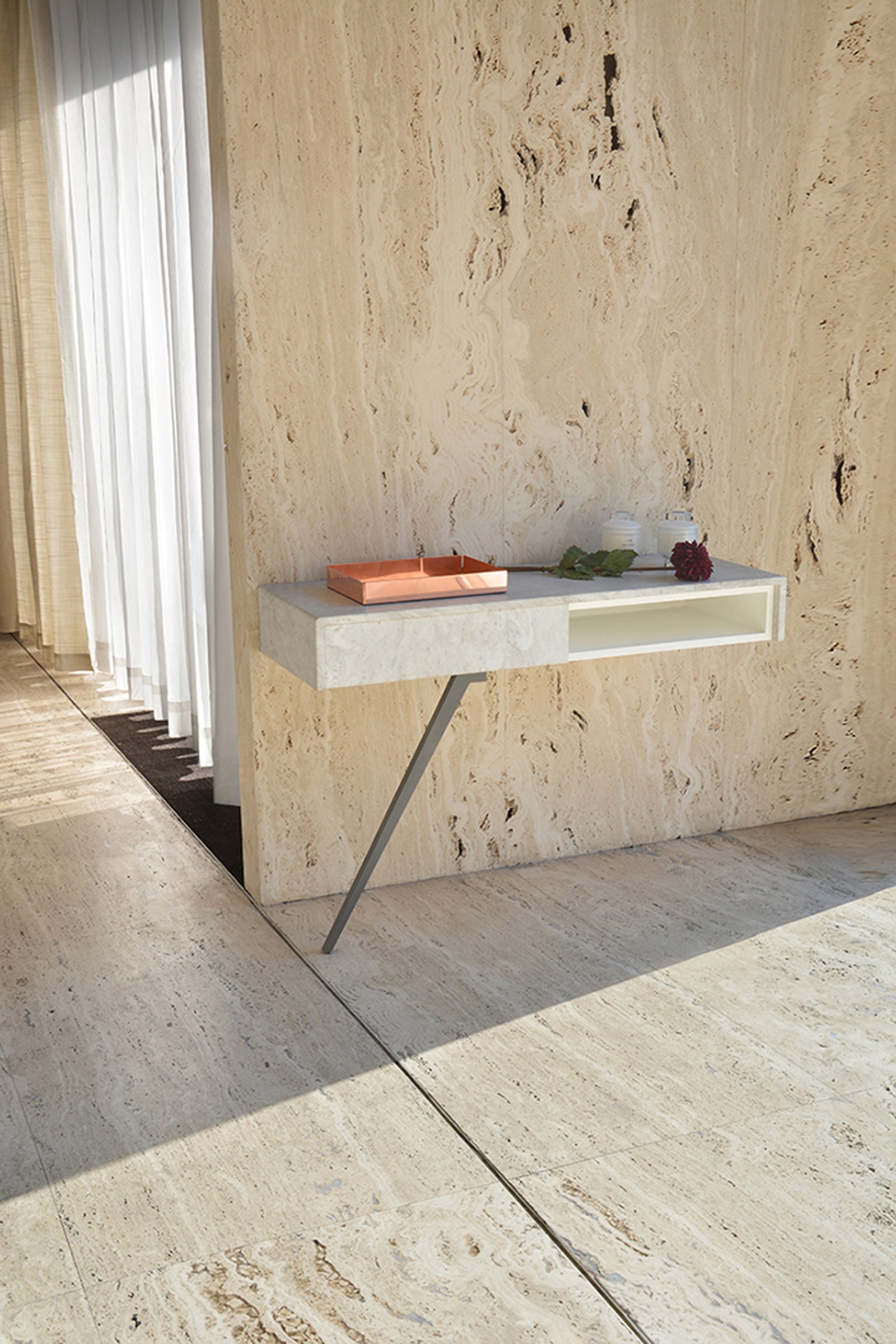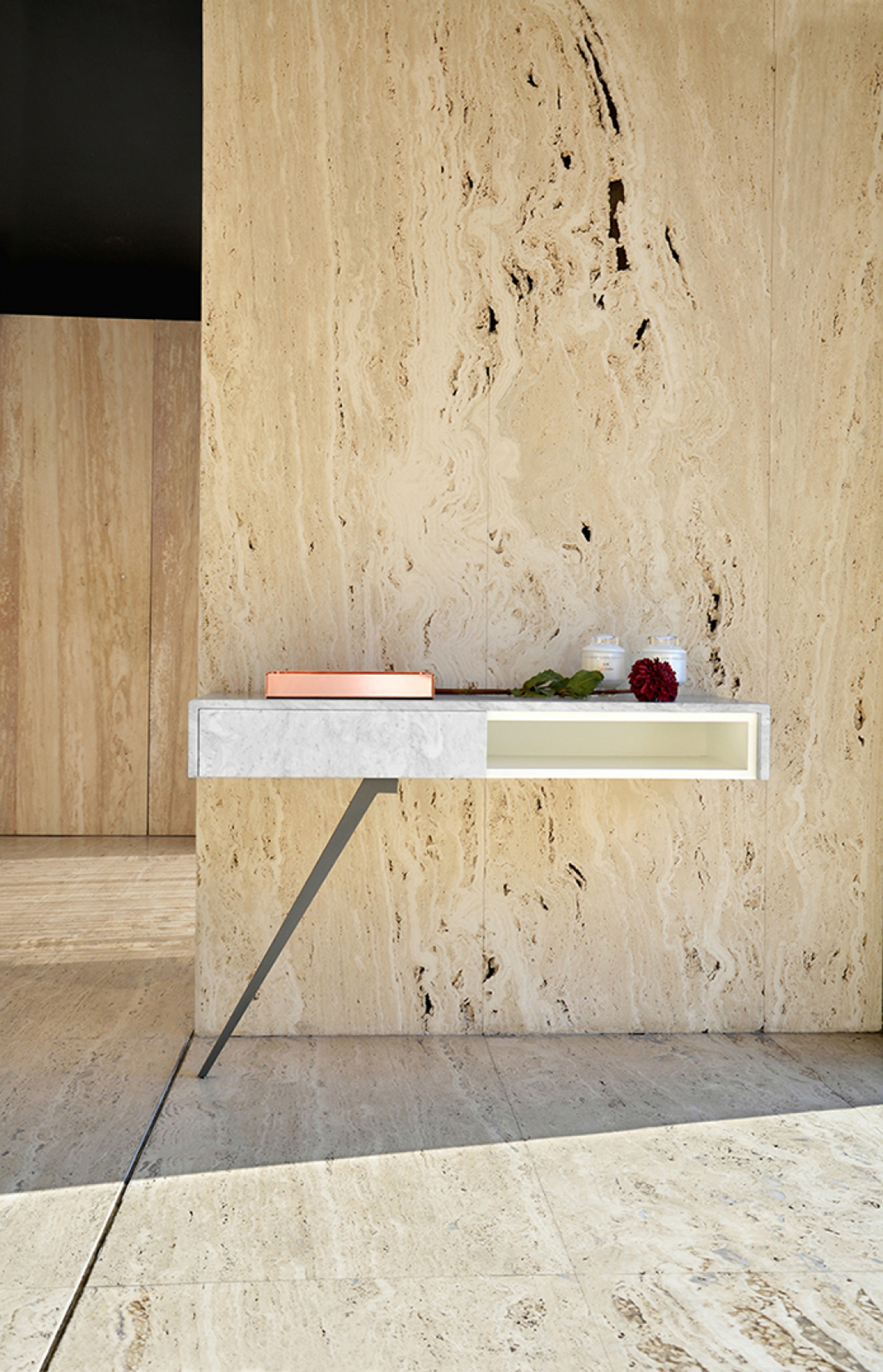 Natural stone shows variations in veining, colour, and texture that are inherent to its geological origin. Each Atir Carrara Console piece is unique. The images shown are representative and not definitive.