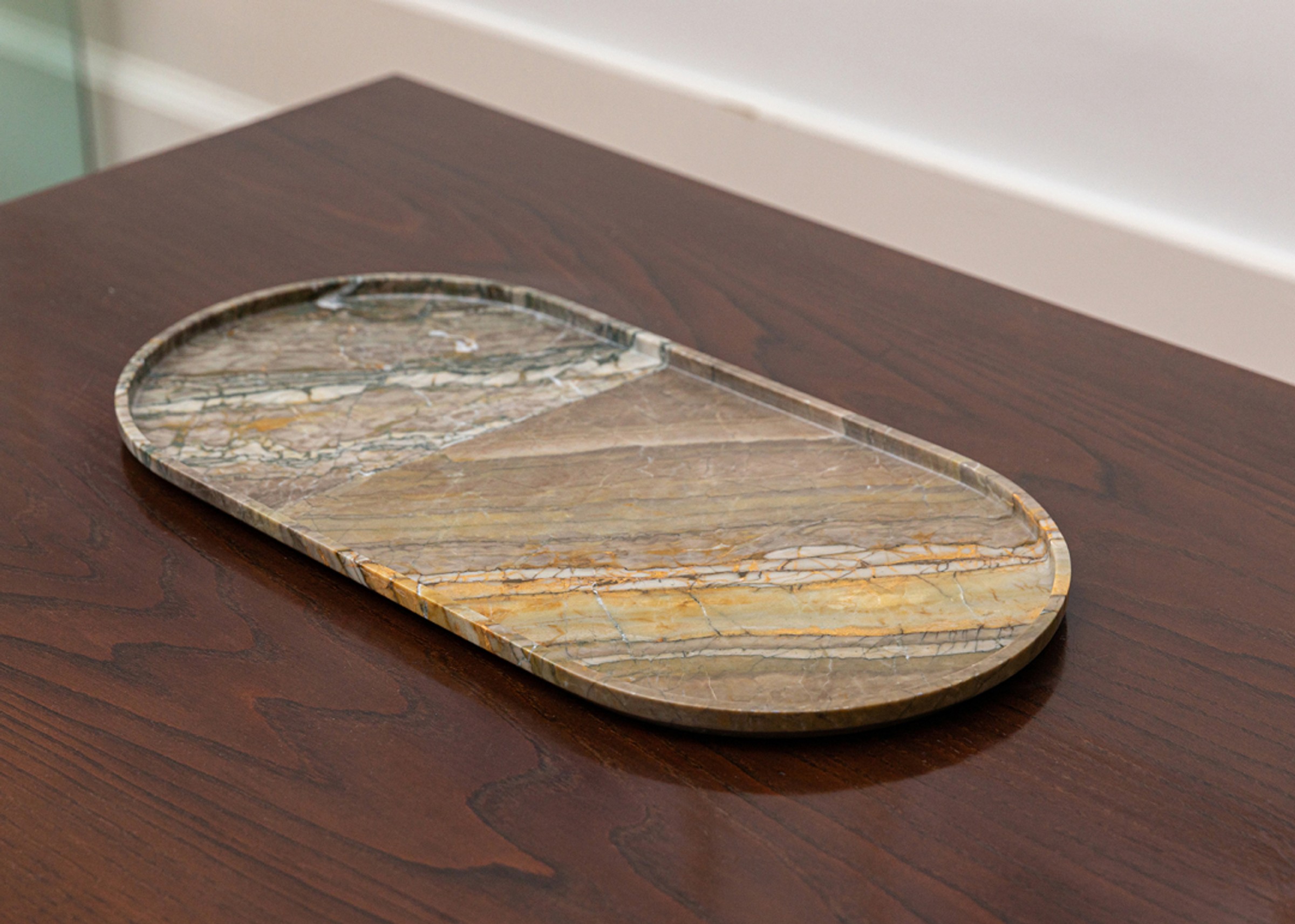 Natural stone exhibits variations in veining, colour, and texture that are inherent to its geological origin. Each Round Tray piece is unique. Images shown are representative and not definitive.