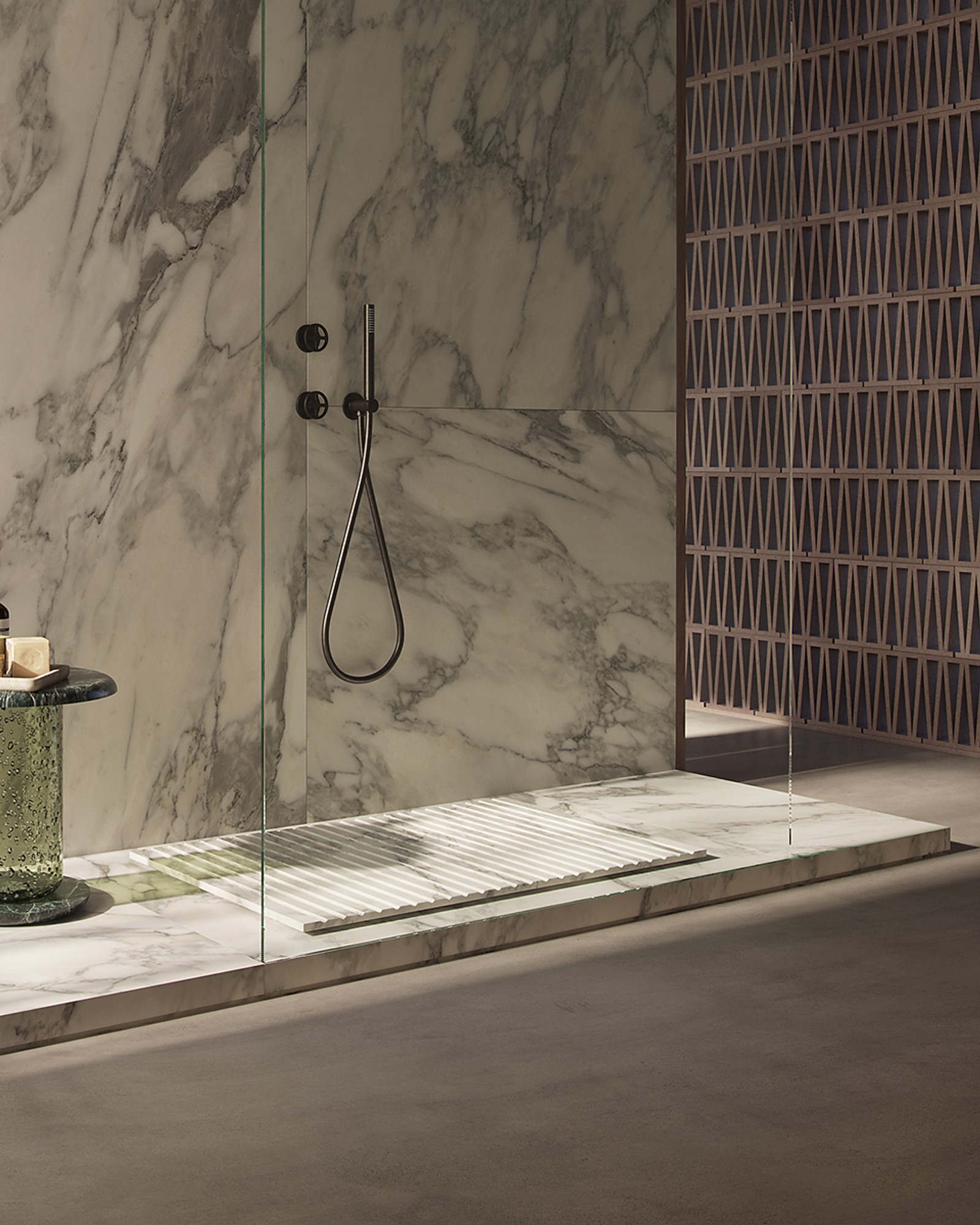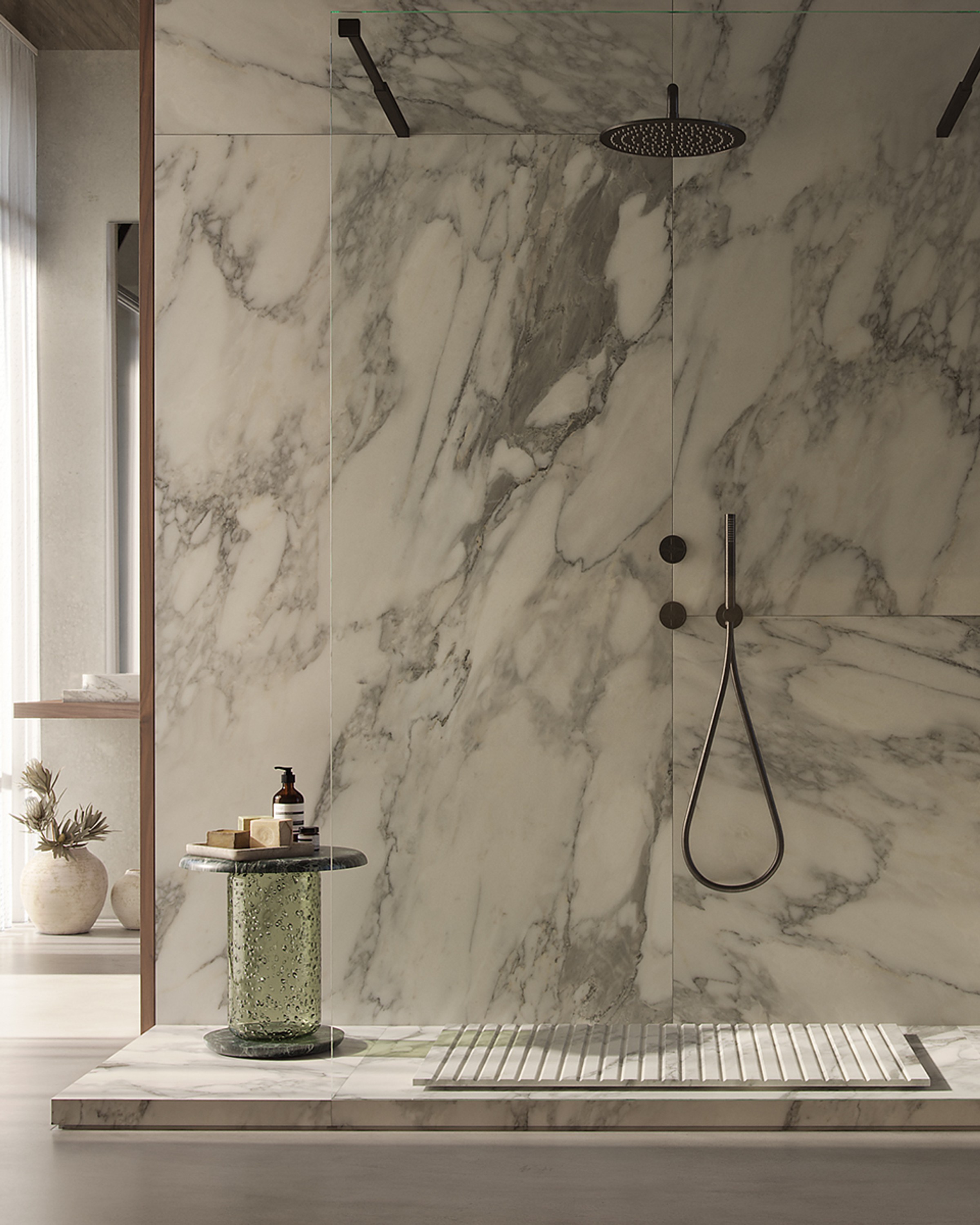 The Arabescato marble used for the Tyre base exhibits natural variations in veining, colour, and texture due to its geological origin. Each piece is unique. The images shown are representative and not definitive.